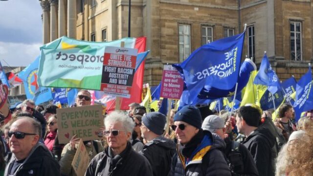 Cientos de miles de personas participaron en la  manifestación contra la extrema derecha «Together » el 28 de marzo en Londres. El principal motivo de esta multitudinaria participación fue el deseo de demostrar que las ideas y la política de extrema derecha no son bienvenidas en nuestras calles, comunidades ni lugares de trabajo.