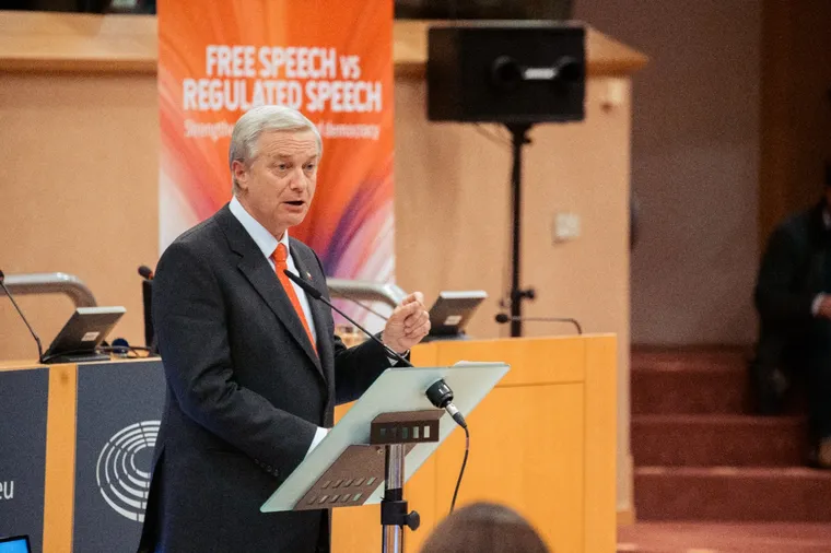 Kast convierte la libertad de expresión en eje de legitimación. Denuncia un “discurso controlado”, critica la “cultura de la cancelación” y rechaza la idea de que la regulación del entorno digital sea condición de democracia. En el contexto europeo, el encuentro estaba explícitamente enmarcado como “libertad de expresión frente a expresión regulada” (“free speech vs regulated speech”).