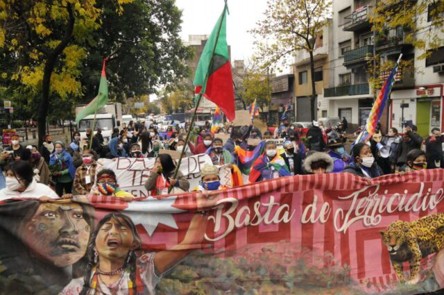 Esta larga lucha del pueblo mapuche por su preservación se ve ahora amenazada por el avance destructivo de las corporaciones multinacionales en su afán de apoderarse de los recursos comunes de la humanidad. En Argentina, este pueblo es blanco directo de milicias locales que instalan alambres de púas en sus tierras ancestrales para expulsarlas y privatizarlas para su propio beneficio. Las mujeres mapuche que conocimos en Bariloche y sus alrededores han liderado con valentía un poderoso movimiento de resistencia y ahora están pagando un alto precio. En la Patagonia, su principal lucha gira en torno a la preservación del agua en la región del Chubut, donde países de Oriente Medio, entre otros, están privatizando manantiales naturales y exportando millones de toneladas de agua, impactando a la población local y causando consecuencias devastadoras para sus vidas.