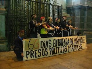 1.- Hoy escribo con algo de rabia y vergüenza. Y es que me han solicitado – solicitado, cuando debí hacerlo sin que nadie lo pidiera – que hiciera un saludo para llamar la atención por la huelga de hambre que llevan adelante unos presos políticos mapuche en Angol y Temuco. Rabia, porque resulta inconcebible que 9 personas deban llegar a poner en riesgo su vida, para demandar el cambio de las medidas cautelares que les afectan y poder cumplirlas en las comunidades de las que provienen. Vergüenza, por que duele que le vengan a decir a uno que haga algo, para recién reaccionar y ver que esa lucha que silencian, es también nuestra lucha y más de una vez lo olvidamos. Los 9 compas mapuche en huelga de hambre pasaron los 60 días de ayuno, han perdido mas de 22 kilos cada uno, sufren de constantes vomitos y mareos y ya están imposibilitados de moverse por si mismos.