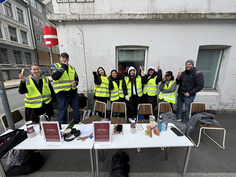 Por supuesto, en EL og IT Forbundet (un sindicato noruego que organiza a trabajadores de los sectores eléctrico, energético, de telecomunicaciones e informático) apoyamos plenamente a los huelguistas del sector hotelero y de restauración. Cuando ganemos la huelga, sonreiremos. Hoy hemos repartido bombones Smile y muestras de apoyo de EL og IT Vestland (EL og IT Vestland es la organización regional de EL og IT Forbundet en el condado de Vestland, Noruega).